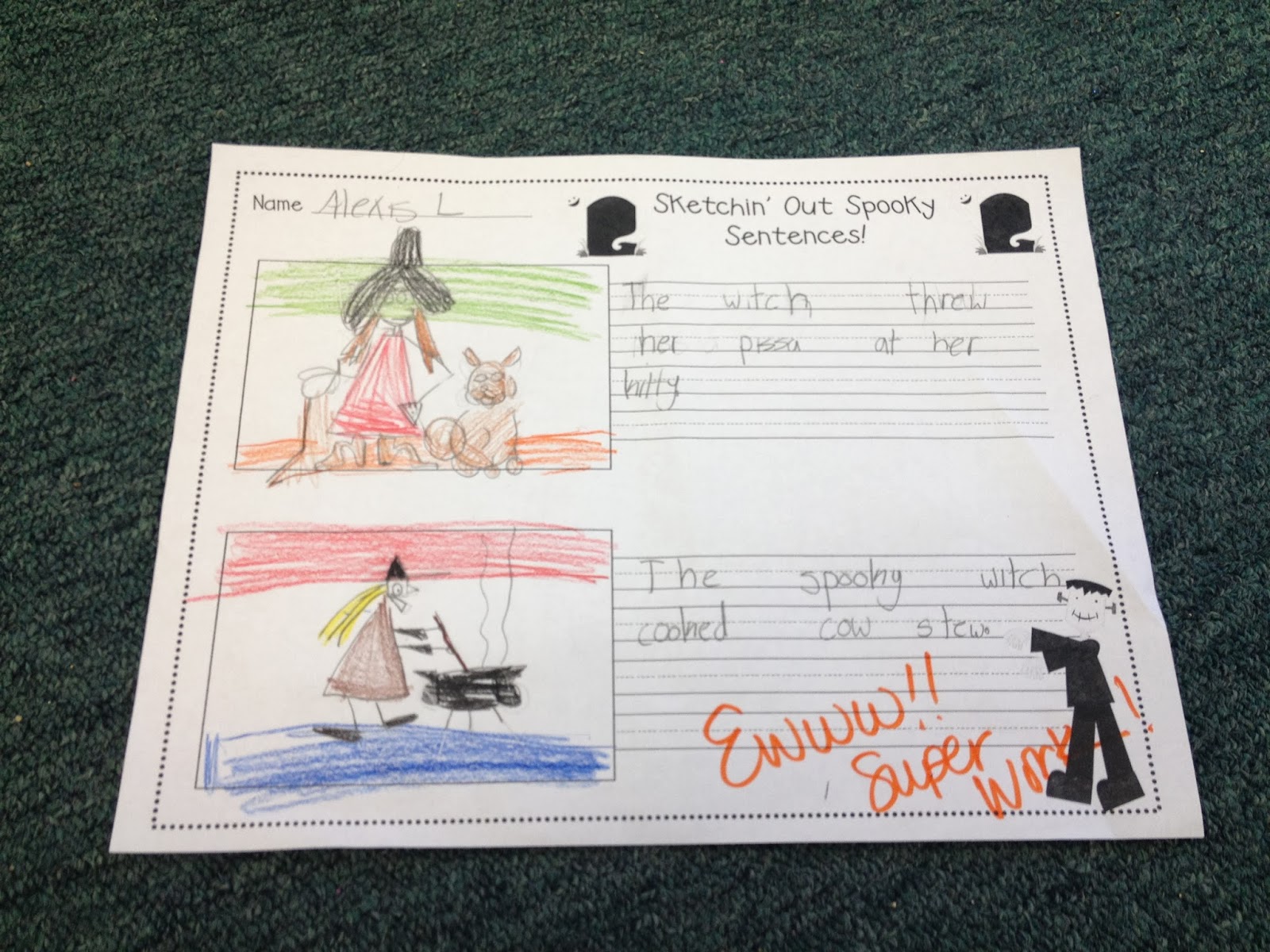 Next, I bring you Sketchin’ Out Spooky Sentences – FREEBIE. This one always delights my kiddies. I think it’s the whole BREAKING the classroom writing rule of ALWAYS drafting your sentence before illustrating that draws them in right off the bat. Yup . . . they get to sketch first.