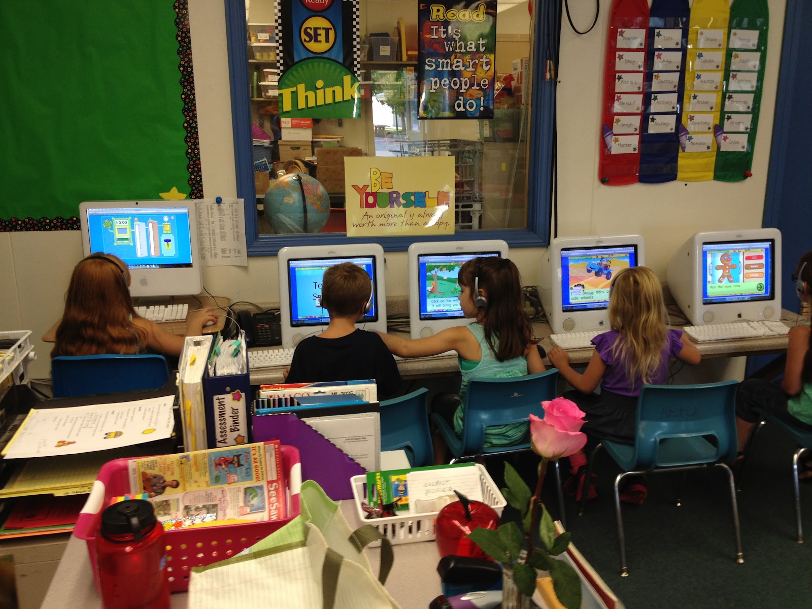 | Fun computer station today during roations . . . and they were quietly helping each other! WOW!! |