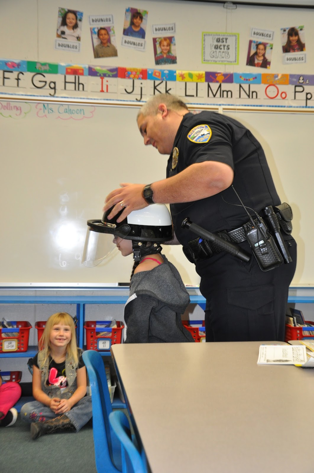 Oh, and in case you didn’t know, last week was National Peace Officer Memorial Week!!  I always do something for Fire Safety week and show appreciation toward these brave men and women by having my babes write letters. However, the poor police have been overlooked in my class.  Well, it just so happens that one of my darling students has the coolest cop for a dad!!!  It seemed only right that we start appreciating these amazing men and women too.  So, our beloved Mr. P came in for a little visit.  The kids were in awe and the visit was classic!  Q & A Time + First Grade = Hilarious.  In addition to the usual kid questions . . . “Do you have a gun?” and “What do the prisoners eat in jail?” . . . one question/response took the cake.  One of my babes asked Mr. P. when he works.  When told that he typically works during the night shift, my little kiddo replied, “Oh, so you’re like a nocturnal animal.”  #yougetanA+kid