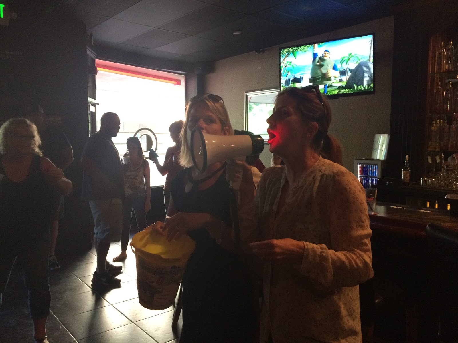 | Yes, there was a megaphone involved. I’m sure the other bar patrons loved us . . . hehehehe. |
