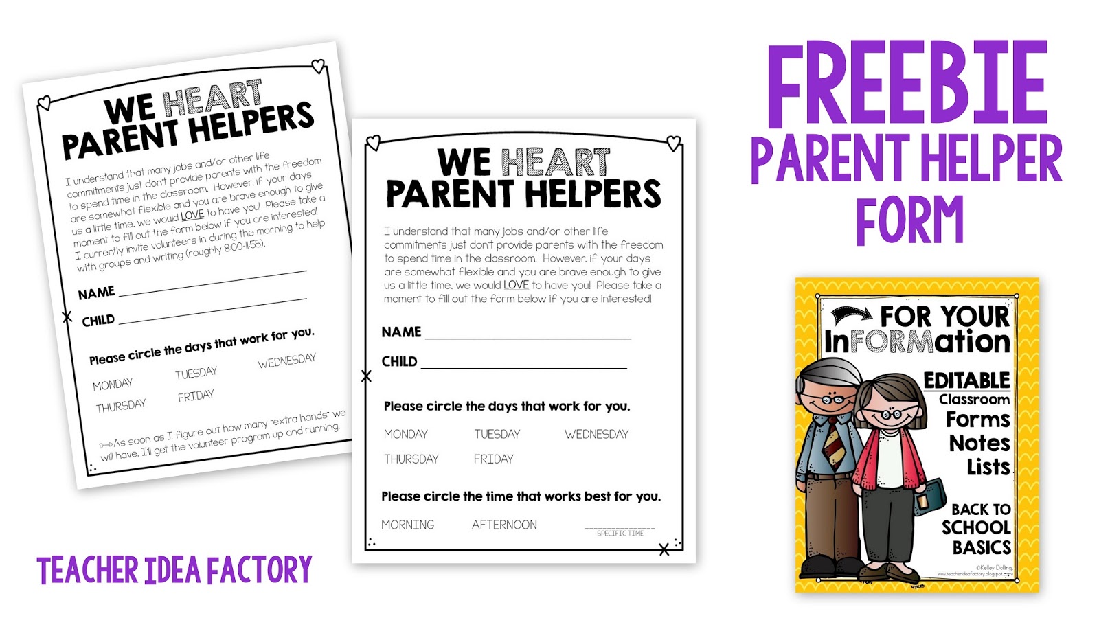• Parent Helper Form – a quick form for volunteers