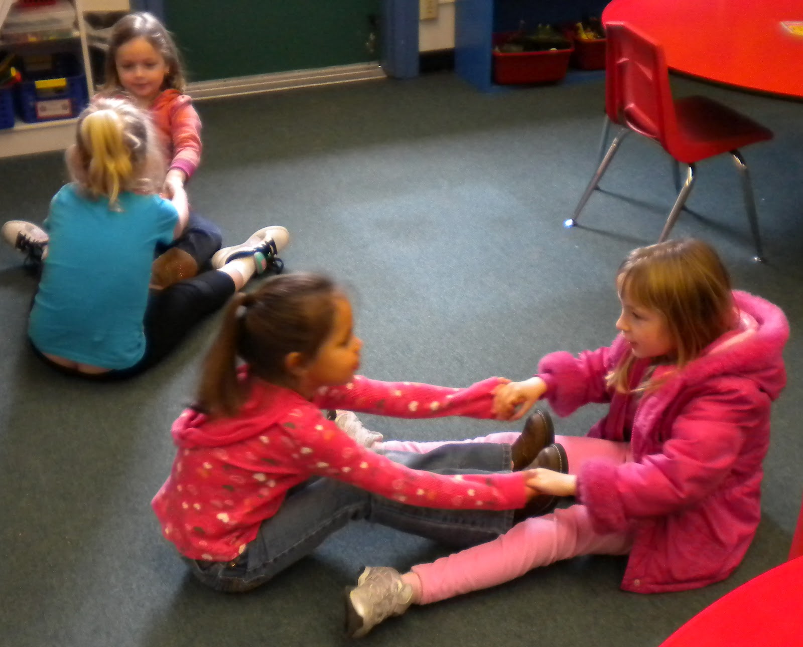 - The kids find a partner and sit with their hands clasped. One student has “alligator legs” (stretched out) and the other keeps his/her legs together inside the “alligator’s mouth.” (At least that’s how I explain it to my kiddos!)