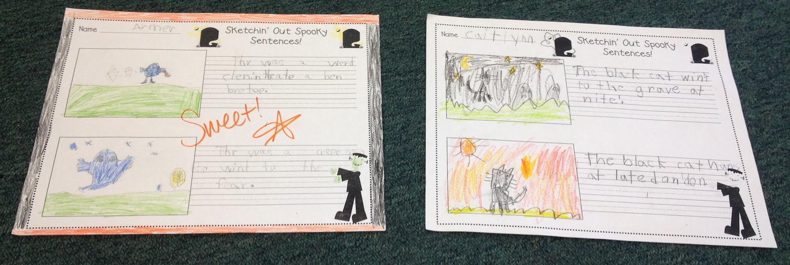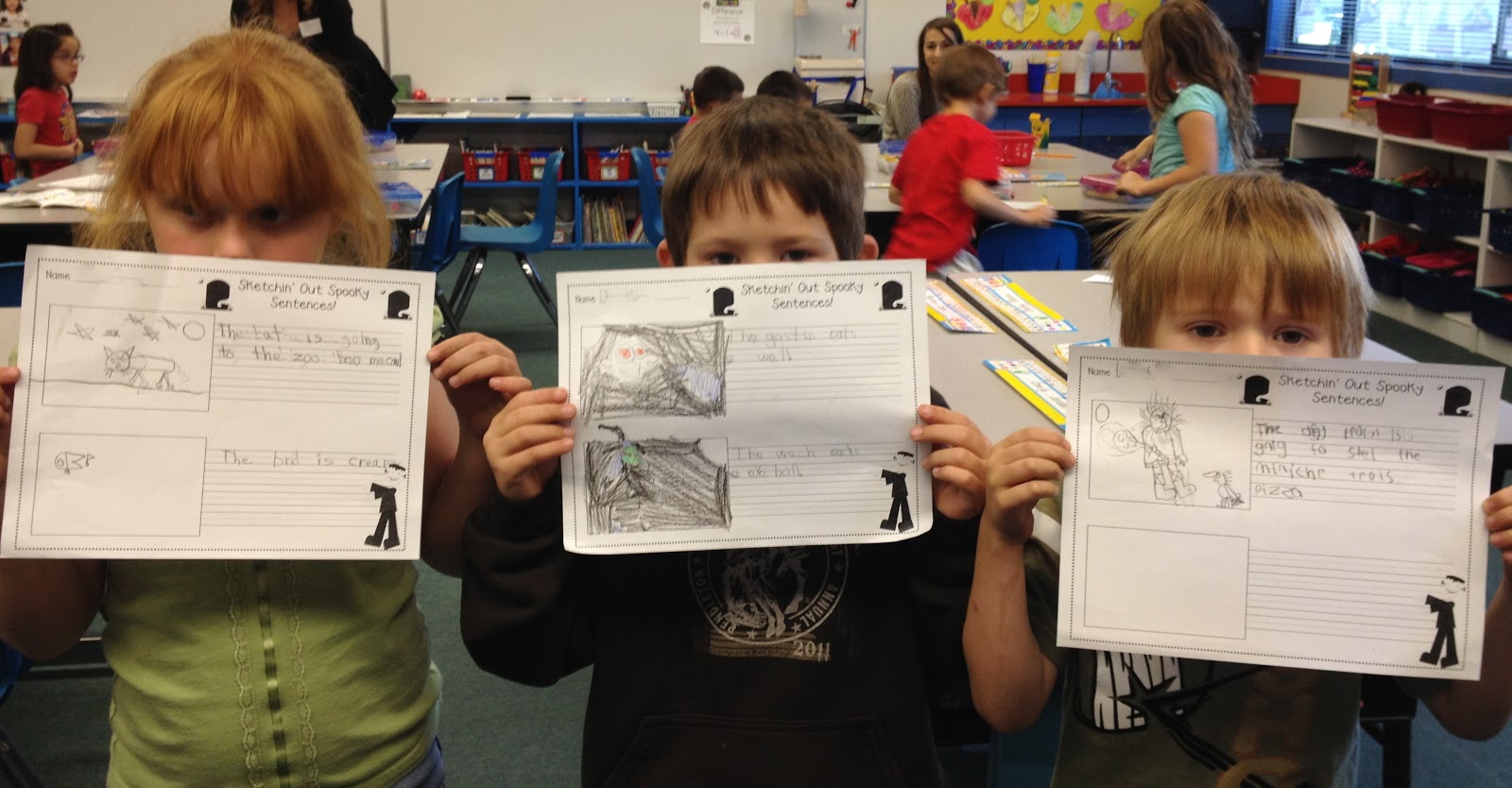 Despite all of the Columbus and fire safety chaos this week, we just had to find a little time to slip in some Halloween action. With this said, I massaged that tighter than tight weekly schedule of ours and managed to find a sliver of time for Sketchin’ Out Spooky Sentences. I have been rollin’ with this crazy idea for the past three years now and it’s always a real crowd pleaser. Did I peek your interest? Well, let me utter a teacher’s favorite phrase to help hook ya in just a wee bit more . . . it’s free 🙂