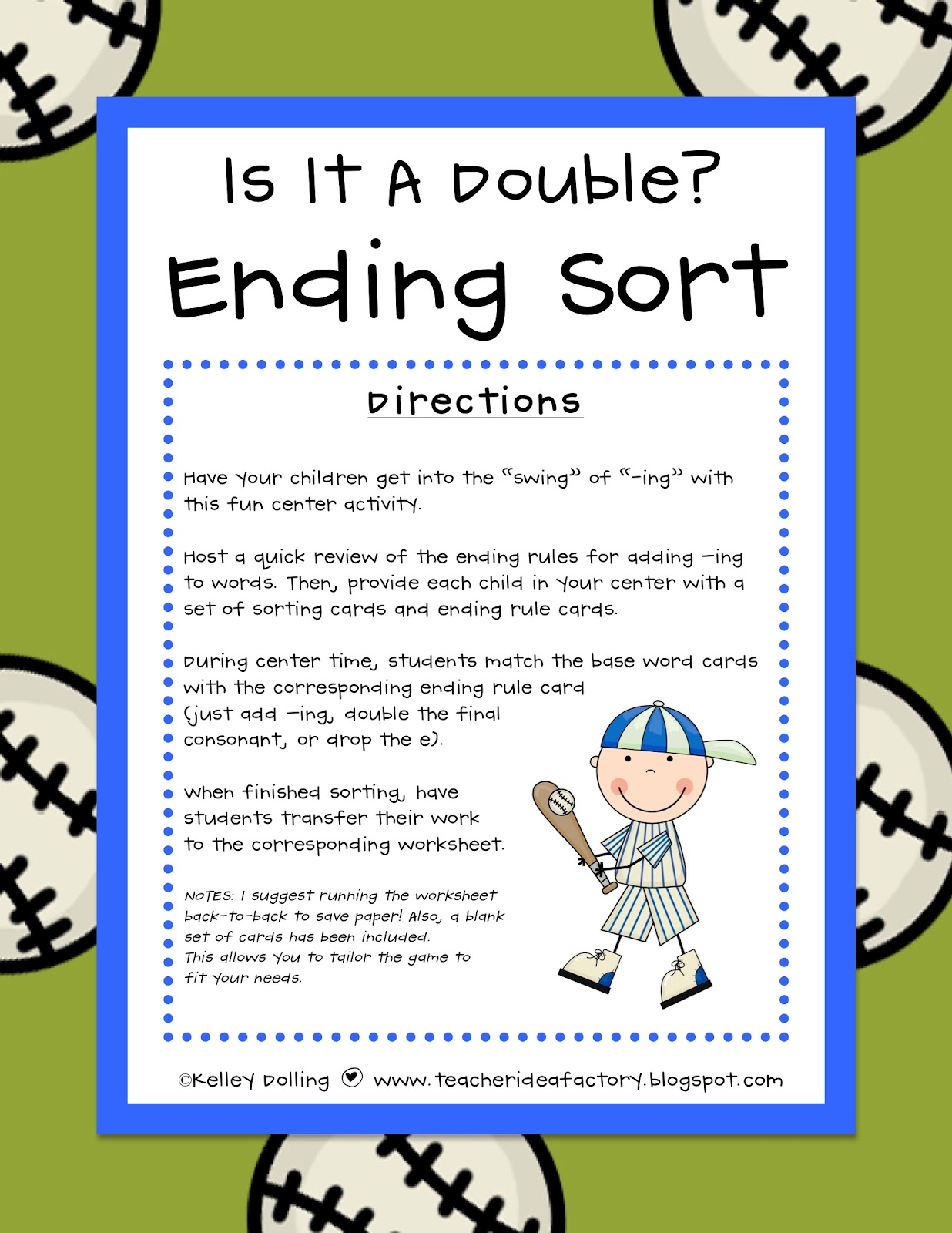 Last but not least, I came across the cutest little baseball craftivity. Teri over at A Cupcake for the Teacher always has the best ideas and it just so happens that she created a “baseball buddy” that would go oh-so well with my new review pack. It even comes with a wonderful writing activity!