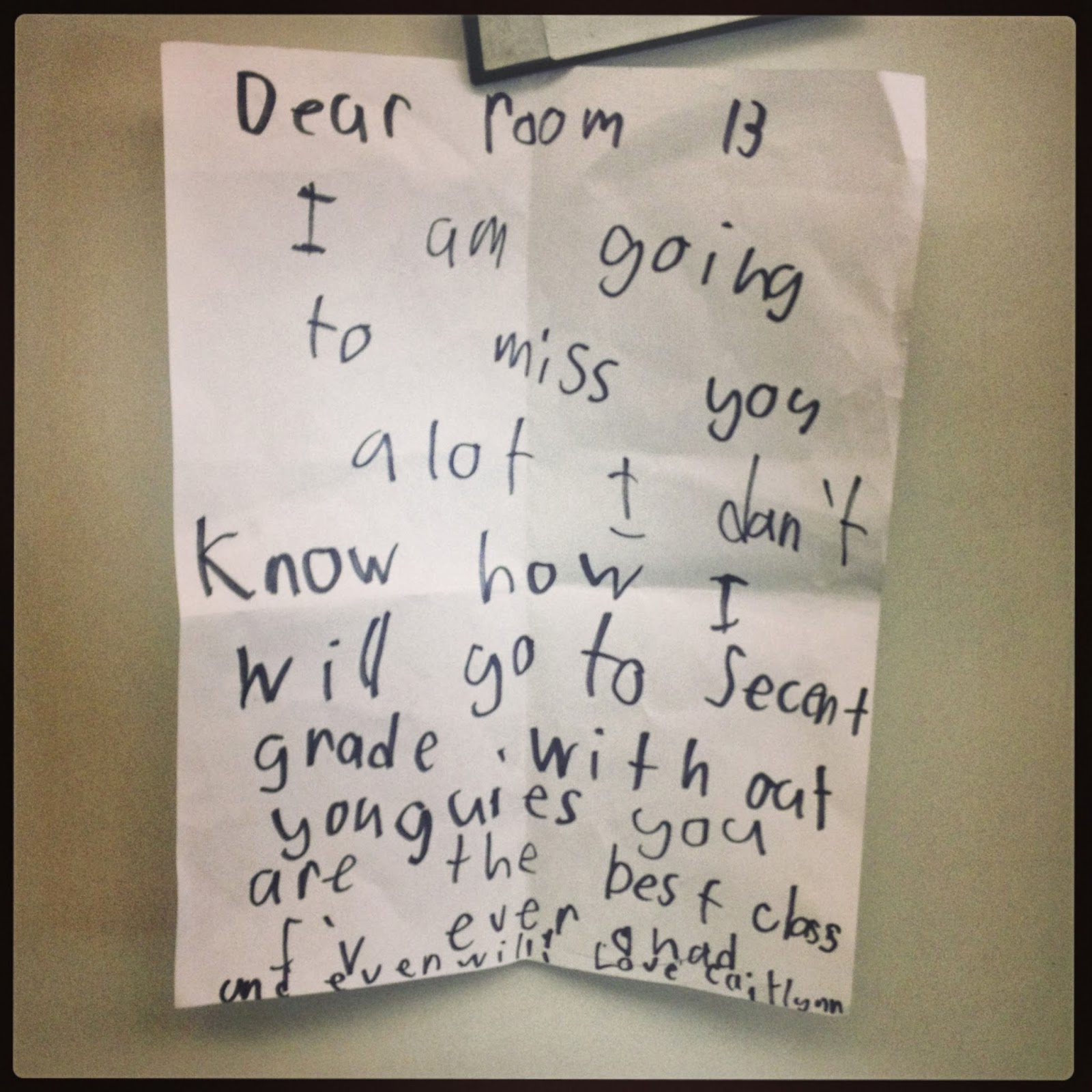 This letter from a little darlin’ was handed to me on the last day of school in June. It’s hanging in my office.