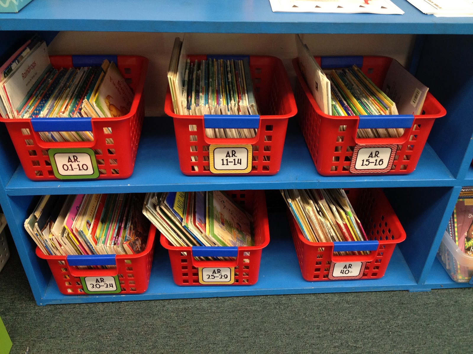 | My AR bins!! I used the blank labels in Katie King’s decor set to create matching labels. CLICK HERE to see her awesome primary color set! |